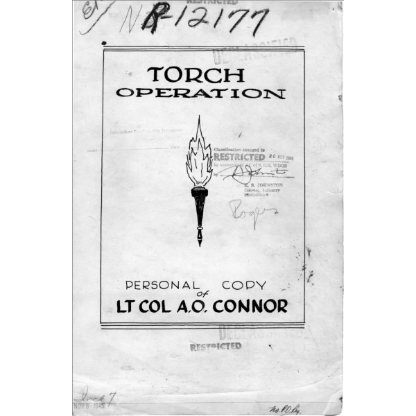 After action report which contains the 3rd Infantry Division Field Orders No. 1 to No. 22 for Operation Torch. Includes annexes, special instructions, maps and information pamphlets.