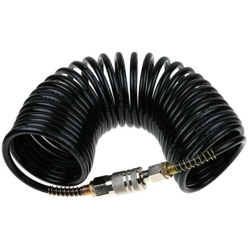 25ft Air Compressor Hose with Bend Restrictor and 1/4 Quick Coupler - Coiled Flexible Air Hose with Solid Copper Connectors