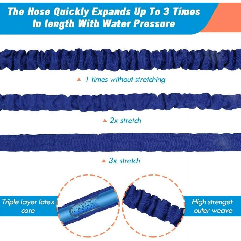 25ft Stronger Expandable Garden Hose Set Latex Hose 7 Spray Nozzles Strong