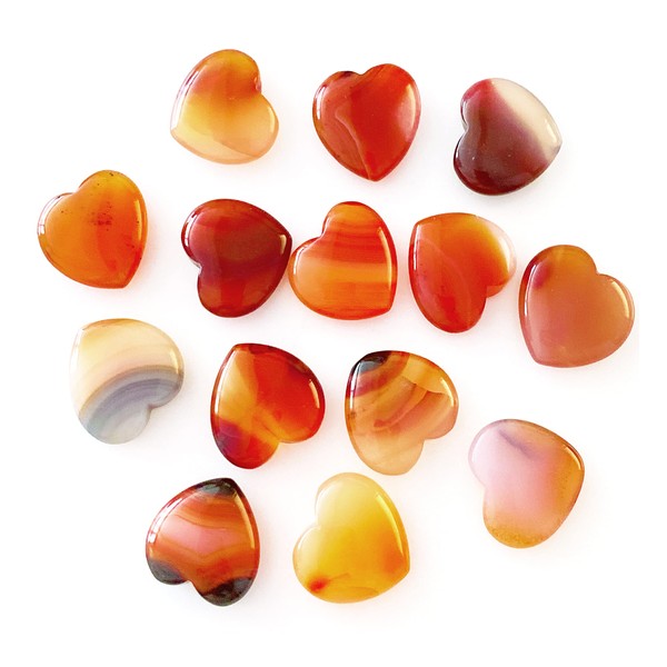 25mm Natural Healing Crystal Heart Worry Love Stone Chakra Balancing Palm Thumb Gemstones with Hole (Carnelian, with Hole - 15pcs)