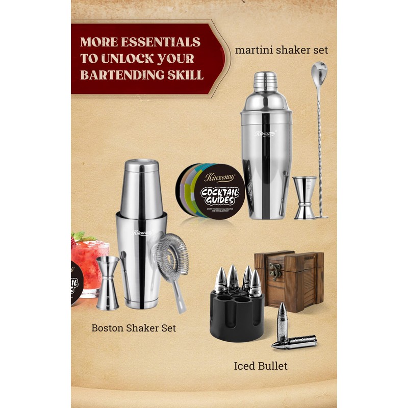 - Bartender's Choice: Whether you want to celebrate or unwind, be stimulated or relaxed, remember or forget. For all the reasons why we shake and enjoy our cocktails, with kitessensu martini shaker set creating and serving cocktails is as much fun as drinking them. Your order will be backed by a full 30-day money-back guarantee, don’t hesitate to reach out to our customer support if there is any issue you have
