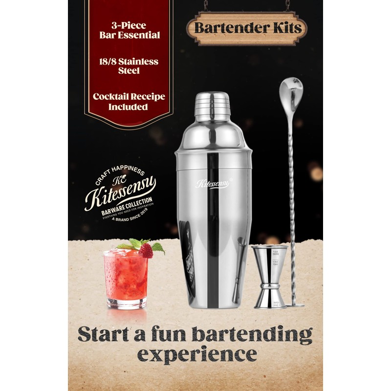 - Add Master Mixologist to Your Resume: Curated by KITESSENSU with the cocktail enthusiast in mind, this 3-piece cocktail shaker set has everything mixology kit you need to make cocktails, whether you’re a bartender looking for quality drink mixer set, or a home mixologist to get started creating and serving drinks from your own entertainment space