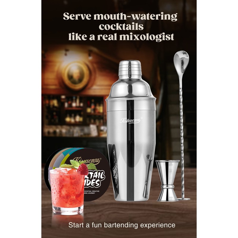 - Bartender's Choice: Whether you want to celebrate or unwind, be stimulated or relaxed, remember or forget. For all the reasons why we shake and enjoy our cocktails, with kitessensu martini shaker set creating and serving cocktails is as much fun as drinking them. Your order will be backed by a full 30-day money-back guarantee, don’t hesitate to reach out to our customer support if there is any issue you have