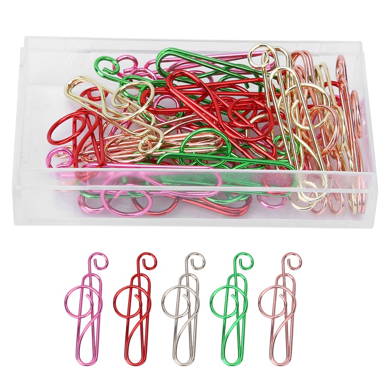 1、Suitable for sticky notes, documents, letters, reports, DIY, hand account, office, learning, etc. 2、Made of high quality metal, electroplated coloring, durable, not faded. 3、Special music notes shaped design makes these clips unique and bring much fun. 4、Rich and colorful colors, especially conspicuous, allowing you to quickly find what you need. 5、Comes with a small box for convenient carry and storage.
