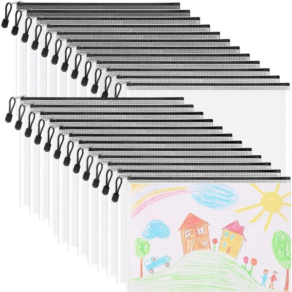 25pcs Mesh Zipper Pouch, A4 Zipper File Bags Document Bags Office File Holders Zip File Bags Folders for School Office Supplies and Travel Storage (25pcs Mesh Zipper Pouch(Black))
