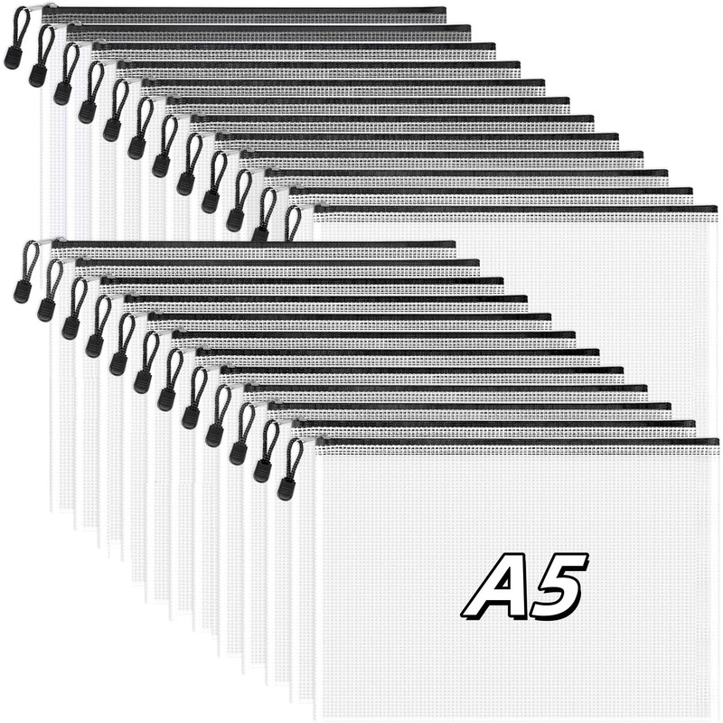 25pcs Mesh Zipper Pouch, A5 Mesh ZipperPouch Zipper File Bags Small Size Document Bags Office File Holders Zip File Bags Folders for School Office Supplies and Travel Storage (25pcs A5 (Black))