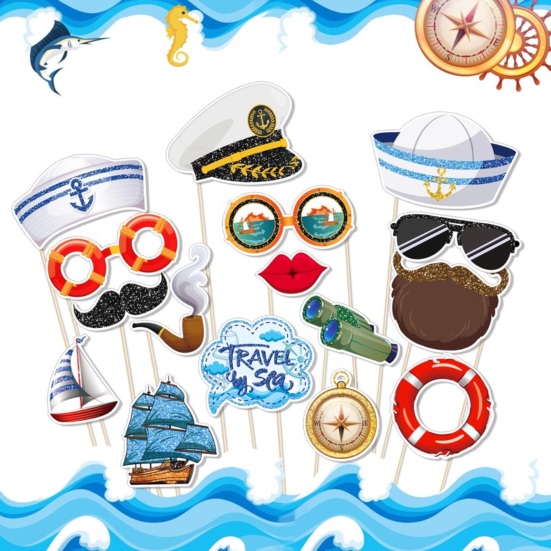 - ndless Photo Fun for All Ages Whether it’s a toddler’s 1st birthday, a kid’s pirate-themed party, a baby shower, or even an office team-building event, these props make photos pop! Little ones will giggle holding "Captain" signs, teens will pose with sailboat cutouts, and adults will love the retro sailor vibes. Your guests won’t stop taking selfies—guaranteed!