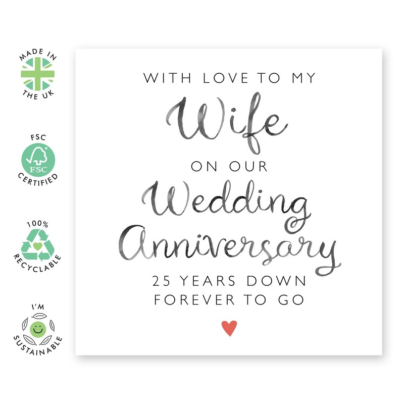 - 💌 HAPPY 25 YEARS ANNIVERSARY CARD - Celebrating more than 2 Decades of love and having each other side by side. Remind your wife why you tied the knot 25 years ago! This card was hand illustrated by one of the expert Central 23 designers, this unique card is guaranteed to put a smile on your loved ones face!