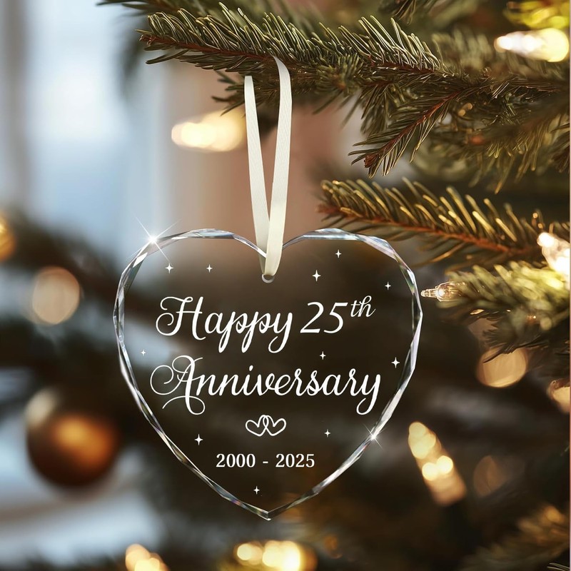 25th Anniversary Crystal Ornament,Wedding Gift for Parents,Couple,Wife or Husband,Christmas Heart Shape Crystal Ornament,Anniversary Wedding Gift,2025 Glass Ornament
