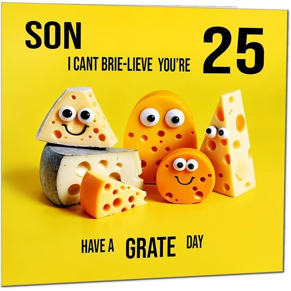 25th Son Birthday Card for Son - Cheese Pun Funny Son's Birthday Card for 25 Year old twenty five, twenty fifth