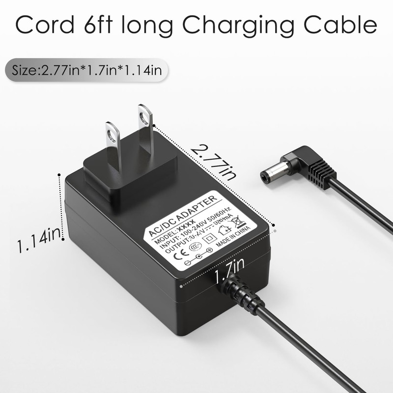 • 👍【Charger Specifications】: AC/DC adapter, Input: 100-240V, 50/60Hz, Output: 26.1V 0.78A (780mA) Power cord length: 6feet/1.8M extra long enough.With Smart LED indicator.