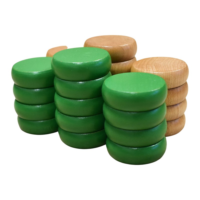 26 Natural and Green Crokinole Discs - Full Set (Small Discs - 1 1/8 Inch Diameter (2.9cm))