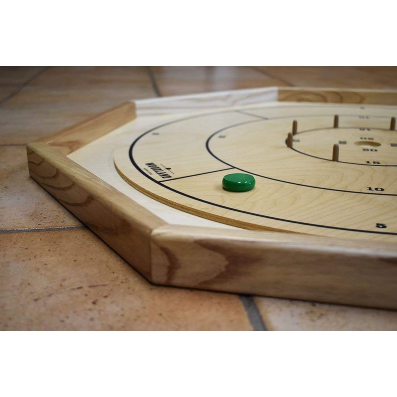 - Includes: A full set (for 2 players) of 26 natural and green small crokinole discs for a traditional style board (2 extra in the set in case you lose them). Please Note: The discs are flat on both sides which is tournament standard