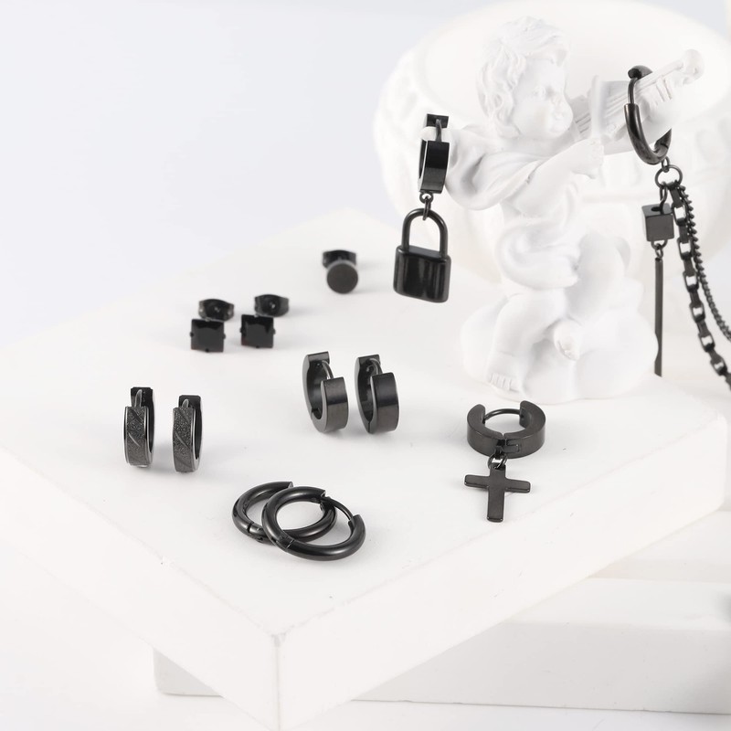 - Fashion style: These black earrings for men are available in various shapes including circle, spikes, triangle, cross and more. The earrings are polished to a high quality that men's earrings look shiny and smooth. These men's stud earrings are really cool. You can wear it with a variety of outfits.