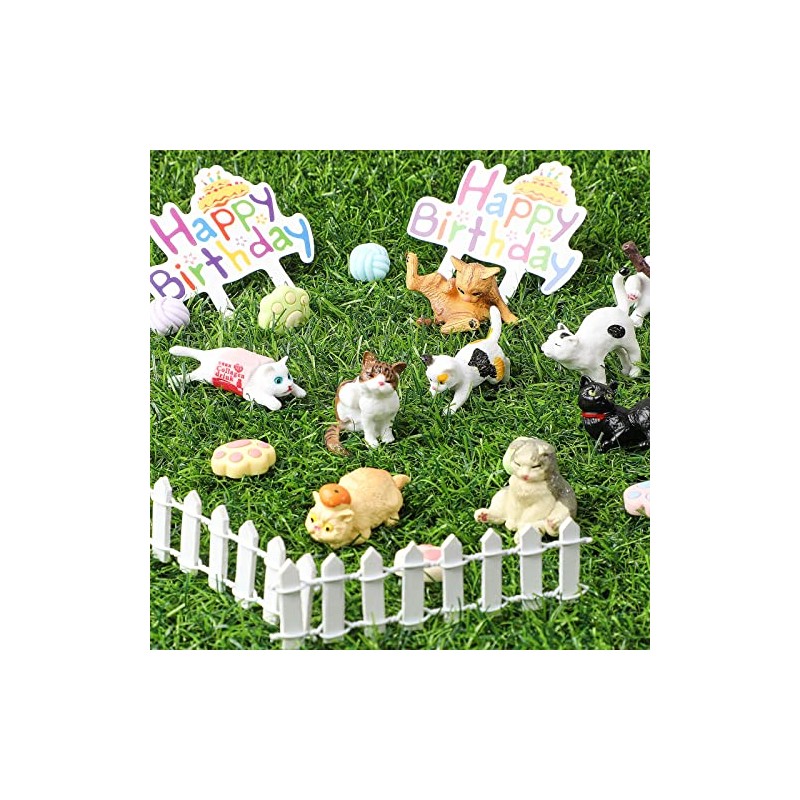 26 Pcs Cat Cake Topper Cute Cat Figurines Cat Happy Birthday Cake Topper Cat Paw Cake Toppers Cat Party Decoration Mini Cat Set for Cat Birthday Party Baby Garden Home Shower Supplies (Cute Cat)