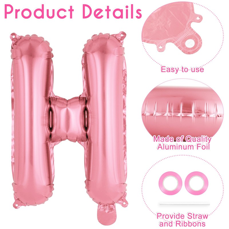 - Package includes: You will receive 26 pcs letter balloons from A to Z for complete words and messages, 2 pcs pink ribbons and an 8cm/3.1inch straw.Measuring 16 inches tall each, the extra large letters provide eye-catching centerpieces and photo backdrops that will impress guests.