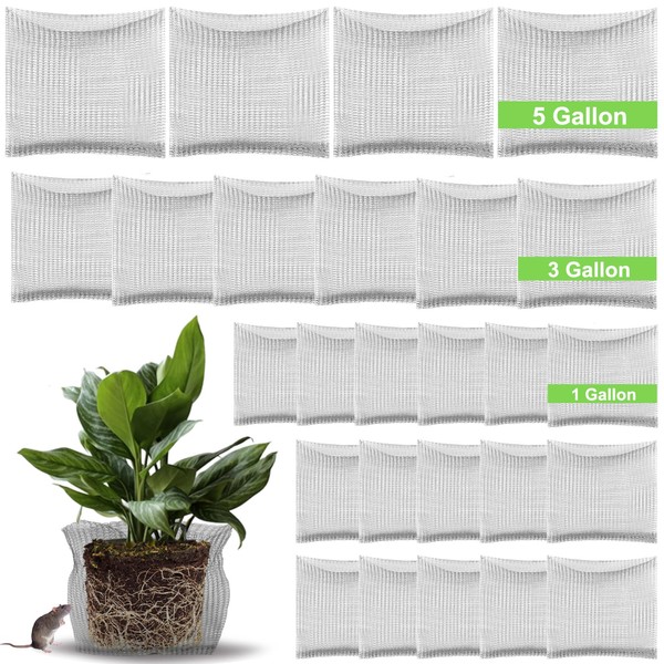 - Versatile Size: This root guard basket set includes 26 metal mesh bags, featuring 16 at 10" x 9" (1 gallon), 6 at 14" x 14" (3 gallon), and 4 at 18" x 16" (5 gallon). This variety ensures you have the right fit for plants of all sizes, from potted plants to larger shrubs.