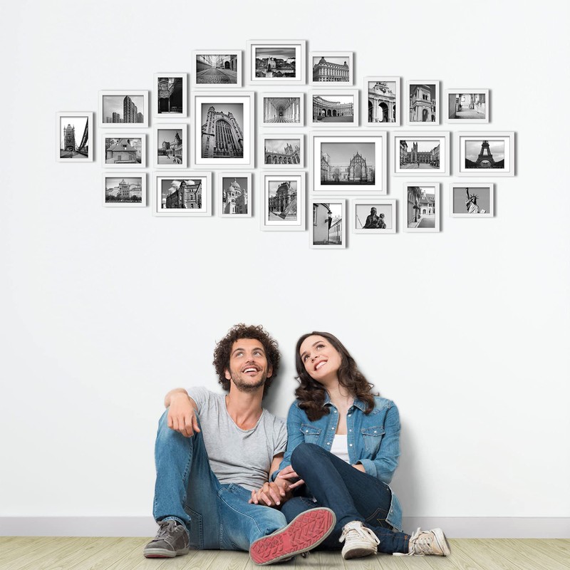 26 Pieces Picture Frames Set Collage Photo Frames Wall Gallery Kit for Wall and Home, Two 6x8 in, Five 4x6 in, Nineteen 3.5x5 in Black White (White)