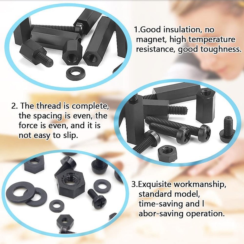 - ◆Premium Material:The standoff Screw Nut Assorted Assortment Kit is made of high quality nylon material,wear resistant,corrosion resistant,good toughness,light weight,good insulation,good mechanical strength and thermal insulation performance.