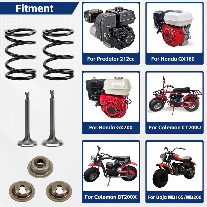 - Compatibility: The valve spring kit for Predator 212cc 196cc 224cc 6.5HP Hemi/Non-Hemi, for Honda GX160 GX200 Clone Engine, for Coleman CT200U BT200X CT200U-EX mini bike.