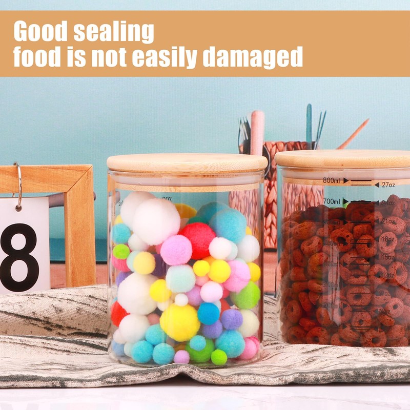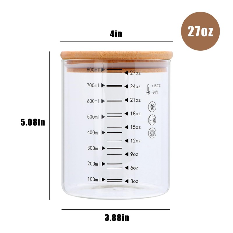 - Excellent Design: This set includes 2 high borosilicate glass jars and lids with a height of 5.08 inches, a width of 3.88 inches at the bottom and a caliber of about 4 inches. Transparent, elegant design with capacity markings provides a stylish storage solution.