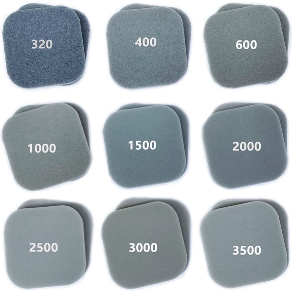 - 27 PCS 9 Kinds Grit include 320 400 600 1000 1500 2000 2500 3000 and 3500 Grits,each Grit have 3 pcs.