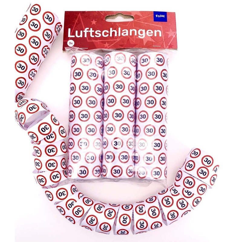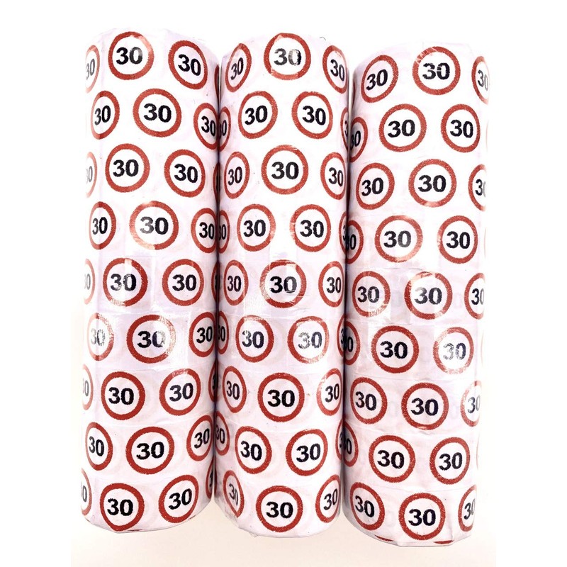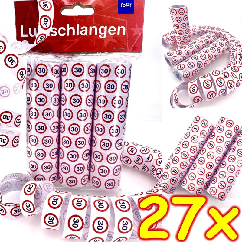 27 Streamers * 30th Birthday * as Decoration for Party and Birthday | 3 Rolls of 9 Snakes Each with Traffic Sign Number 30 | Table Decoration Streamer Party Decoration