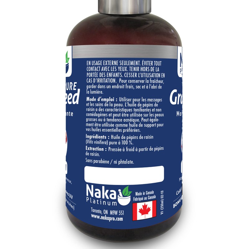 270ml (9oz) Pure GRAPESEED Oil, Cold Pressed + UV Protected, Moisturizes & Nourishes Hair, Face and Skin, Non GMO, Made in Canada