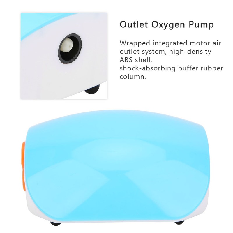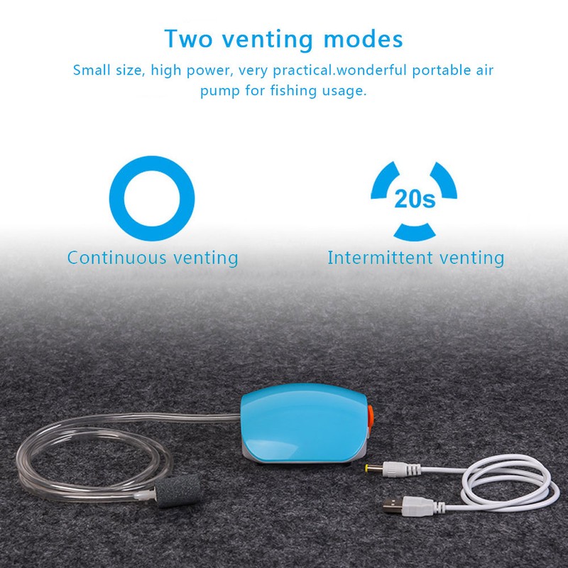 1、Two oxygenation modes, continuous oxygenation + intermittent oxygenation, to meet different needs. 2、Wrapped integrated motor air outlet system, high‑density ABS shell. Shock‑absorbing buffer rubber column. 3、Small size, high power, very practical. 4、Wonderful portable air pump for fishing usage. 5、Professional manufacturing, stable performance and high reliability.