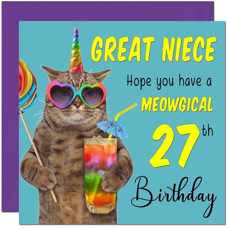 27th Great Niece Birthday Card - Meowgical Cat Funny Birthday Card for 27 Year old twenty seven, twenty seventh
