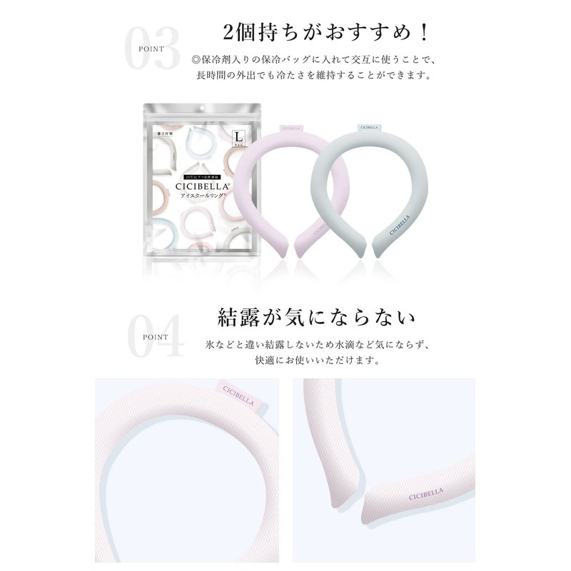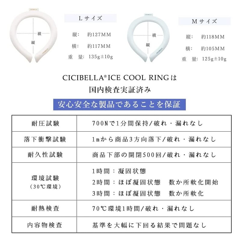 - ■暑い真夏の季節でもリングはひんやりキープ!28度以下の空間で凍る不思議な氷「PCM素材」で作られた首元用のネッククーラー。心地良い温度で首の頸動脈を効率的に冷やすので熱中症対策にもオススメ!氷のように冷えすぎないので低温障害の心配もなくお肌にもやさしい♪