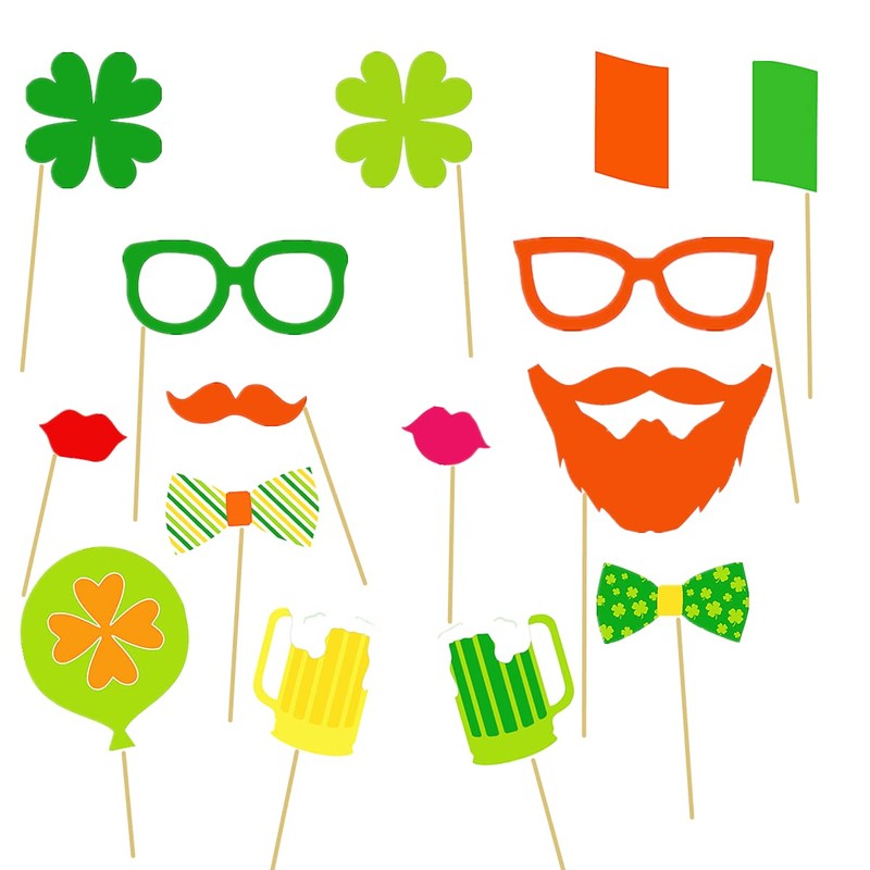 - 28 pieces of each kit: clover, hat, moustache, bottle, leprechaun pipe, bowtie, moustache, eye-glasses...wide variety of choice for every party-goer.