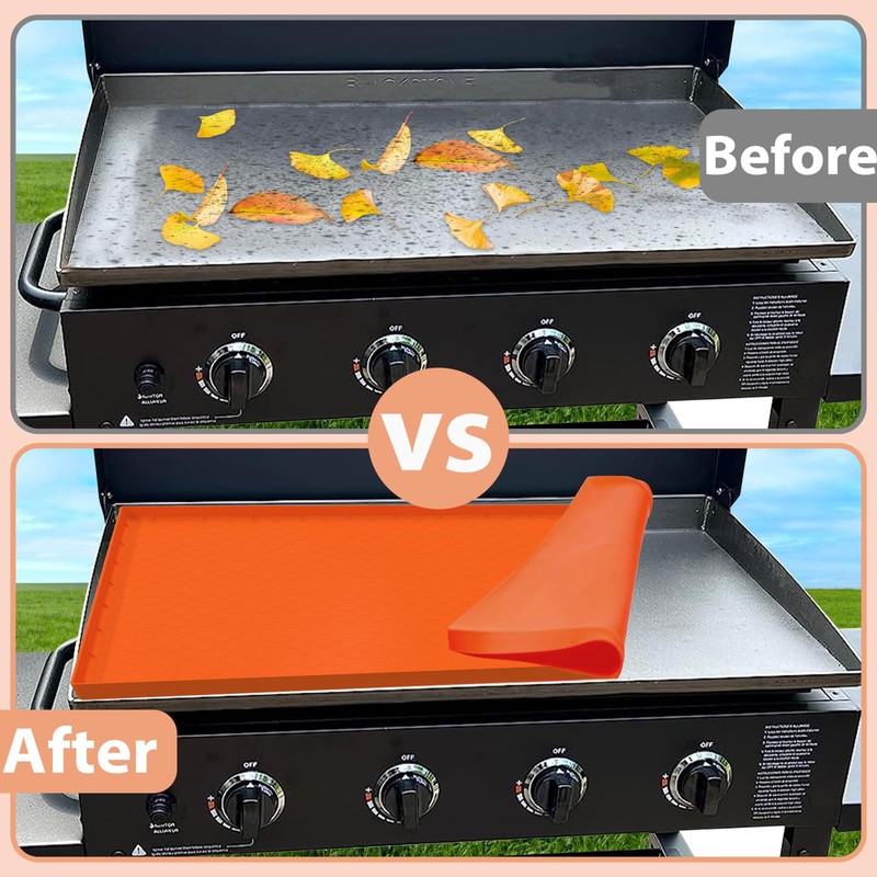 • COMPLETE PROTECTION: The griddle cover keeps the surface of your baking sheet clean for a long time. You can use the baking sheet anytime after removing the mat. The silicone mat prevents damage to the baking sheet caused by insects, dust, crumbs and rust. The special high-edge design keeps out moisture and debris, further protecting the surface of the iron plate from contamination. Extend the life of your iron plate with this must-have Black-stone accessory.
