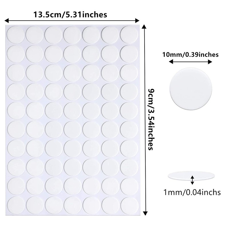 - 【Package Contents】 You will get 4 sheets sticky tacks, each sheet has 70 round putty, 280 in total, the diameter of the adhesive tape stickers is 0.39 in / 10 mm and 1 mm/ 0.04 inch in thickness, sufficient quantity to satisfy your daily application and replacement needs.