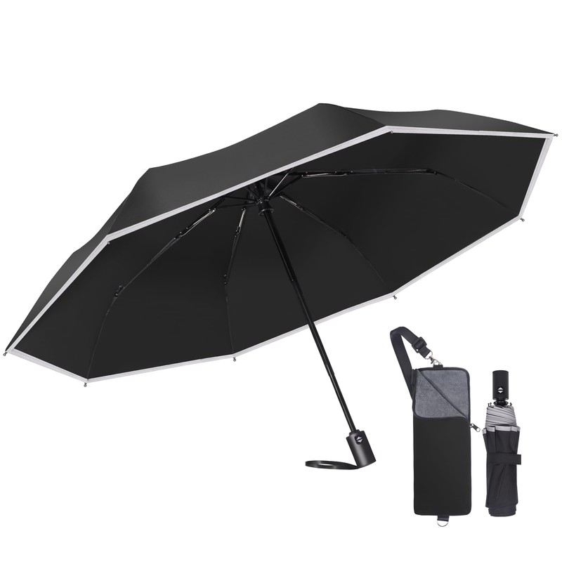 - ✅【夜間の視認性を高める反射テープ付き】 折りたたみ傘の縁全体に反射テープを施すことで、夜間や雨天時の視認性を大幅に向上。暗い夜道でも、車のライトに反射して、歩行中の安全をしっかりサポートします。360°全方向から光を反射する素材を採用しており、通勤・通学・夜のお出かけ時も安心してご使用いただけます。デザイン性と実用性を兼ね備えた、安全志向の一品です。