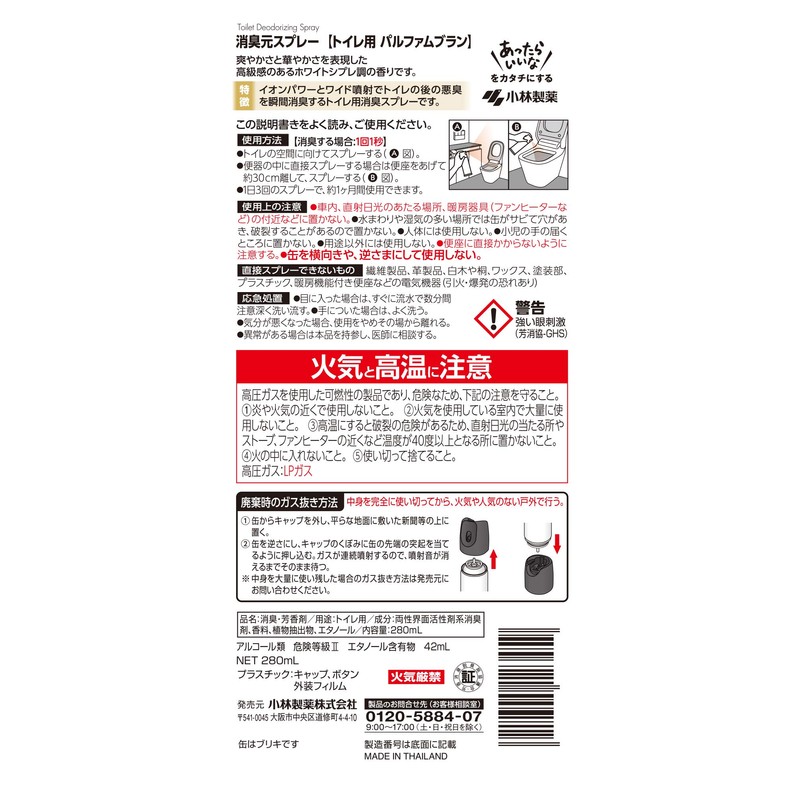 トイレの消臭元 スプレー パルファム ブラン 消臭芳香剤 トイレ用 消臭スプレー 280ml