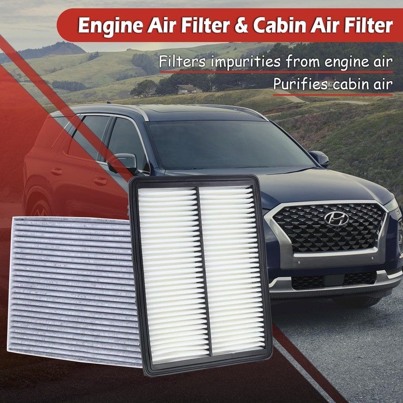 28113-A9100 Engine Air Filter and 97133-S8000 Cabin Air Filter kit Compatible with 2020-2025 Hyundai Palisade V6 3.8L Gas Replaces 28113A9100 CA11943 97133S8000 CF12936