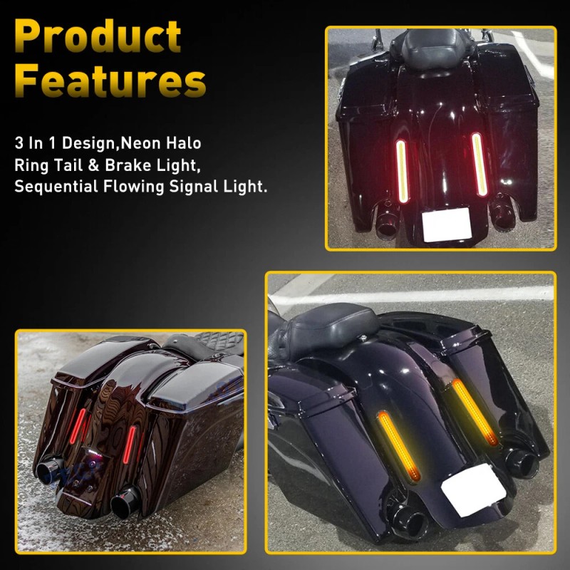 3 In 1 Design,Neon Halo Ring Tail & Brake Light,Sequential Flowing Signal Light.