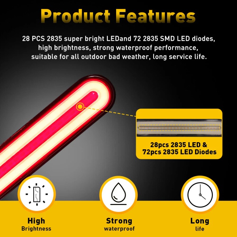 2835 SMD LED CHIPS Dynamic 9.2" Red/Amber LED Truck Trailer Stop Turn Tail Brake Lights Flowing DRL