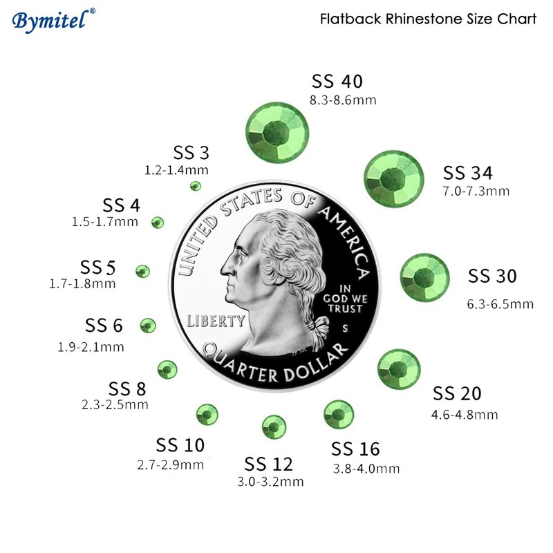 - Color: Peridot; Size: SS8 2.4mm; Back Side: Flatback