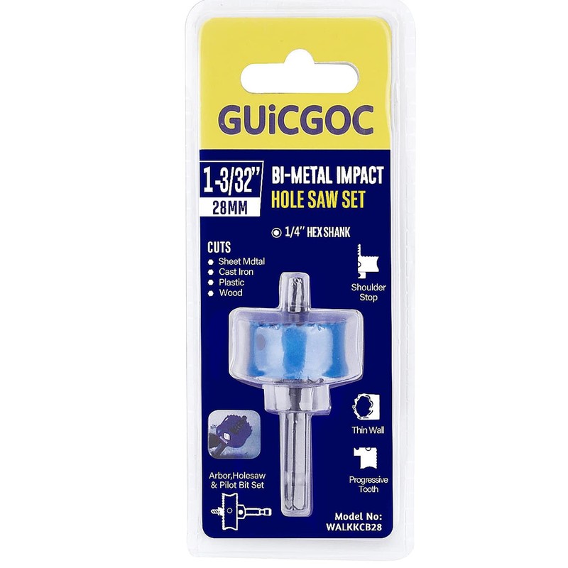 28mm (1-1/10 Inch) Impact Bi-Metal Hole Saw With 1/4" Hex Shank for Thin Sheet Metal and Stainless Steel Board