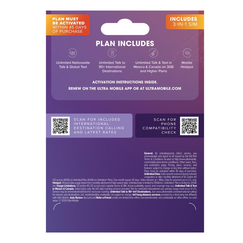 $29/mo. Ultra Mobile Prepaid Phone Plan with Unlimited Talk, Text, & 12GB of 5G • 4G LTE Data for 1 Month (3-in-1 SIM Card Kit)