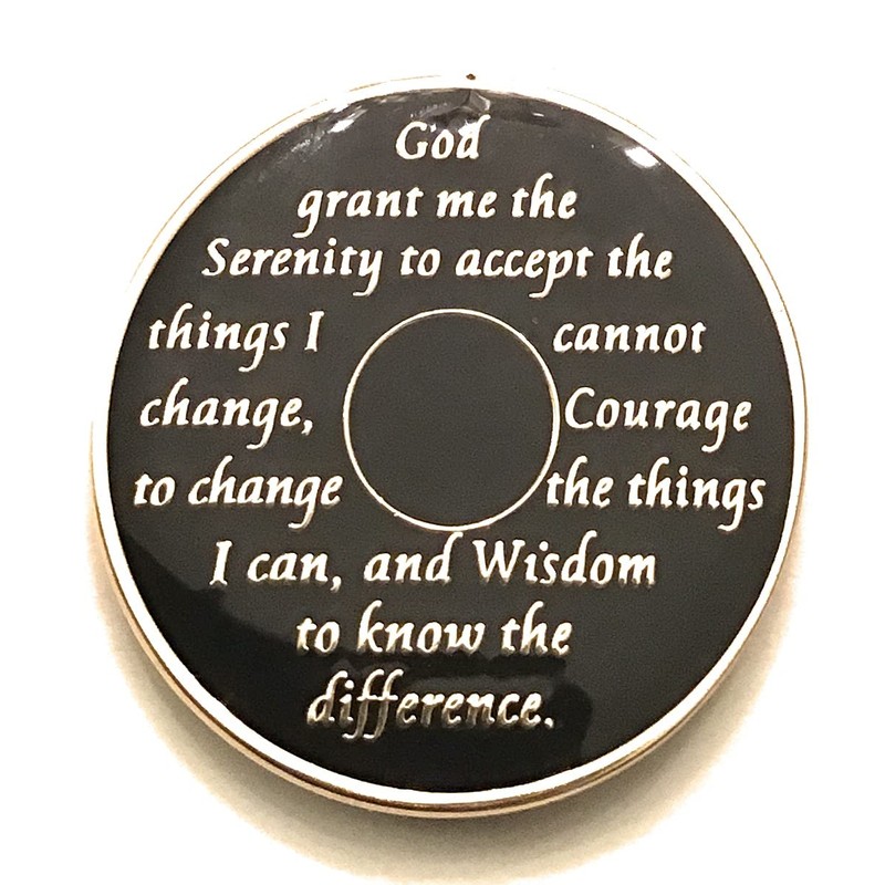 This gorgeous AA Medallion / AA Coin features the time honored Twelve Step Program Phrase “To Thine Own Self Be True” with the anniversary year and “ Unity, Service, and Recovery” on one side and The Serenity Prayer on the other. 38mm round coin. 24kt gold lettering and plating with genuine Swarovski crystals.