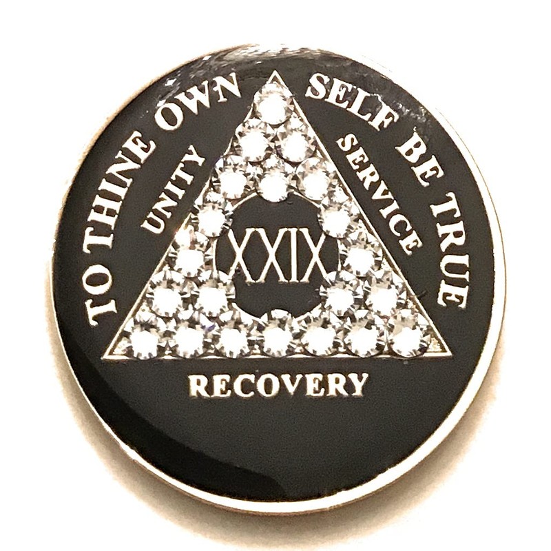 29 Year AA Medallion - Black AA Bling Chip with White Crystals- Sobriety Chip...