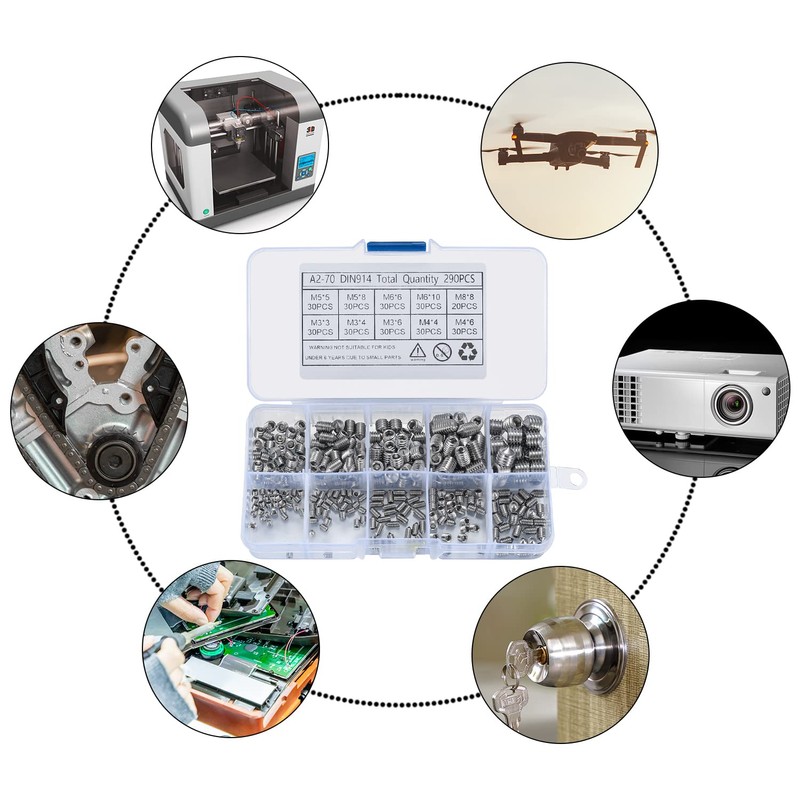 - Set screw assortment kit includes some common metric sizes so you can easily replace a lost or broken set screw.