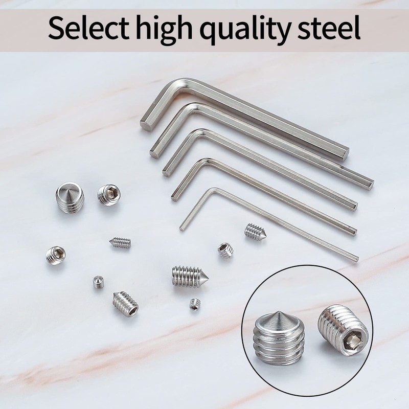 - 【Easy to Use】Uniform pitch, obvious screw thread, no residual burrs, the set screw threads will be able to get a good grip. Hex socket cap design can easily be driven by Allen key wrenches and won't slip out easily.