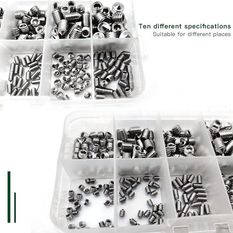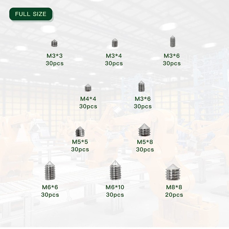 290 Pcs Cone Point Grub Screws Mixed, Assorted Stainless Steel Metric Threads Socket Screws, M3 M4 M5 M6 M8 Screws Assortment with 5 Pcs Socket Allen Key
