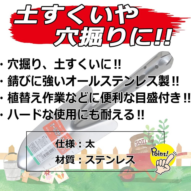千吉 オールステンレス製 スコップ 錆びにくい 約290mm 太