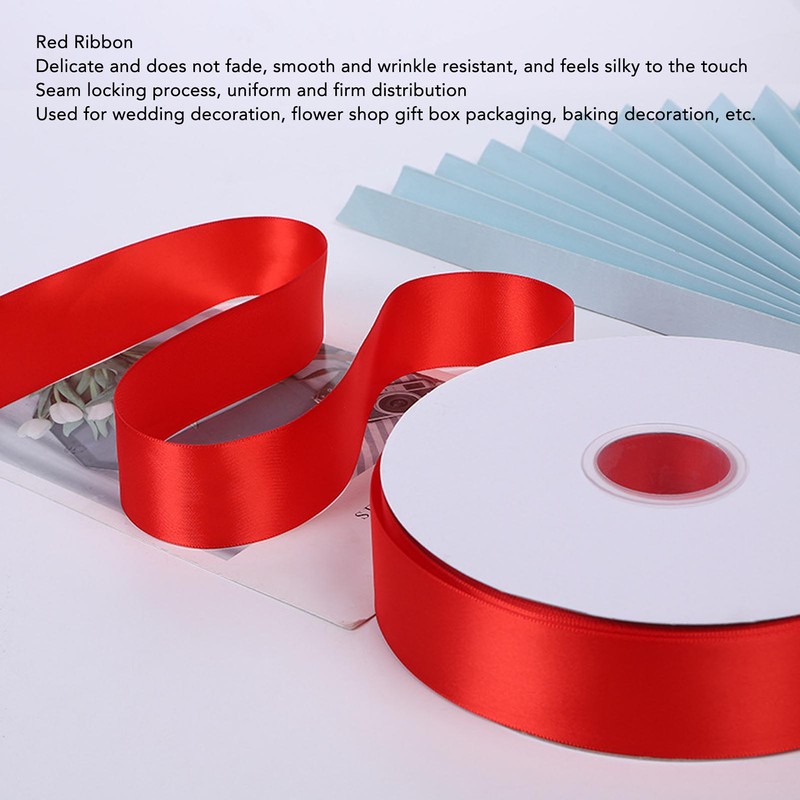 1、Durable Material: Made of polyester material, the texture is delicate and does not fade, smooth and wrinkle resistant, and feels silky to the touch. 2、Fine Workmanship: The red satin ribbon adopts seam locking process, uniform and firm distribution, goodbye to the trouble of disconnection. 3、Wide Application: The red satin ribbon is widely used in wedding decoration, flower shop gift box packaging, baking decoration, etc. 4、Wide Width: With a generous width of 3.8cm, this ribbon roll allows for versatile use, making it suitable for flower wraps, wedding decorations, and more. 5、Ample Length: With a total length of 298 feet, this ribbon roll provides an ample supply for all your creative endeavors, ensuring you never run out of ribbon.