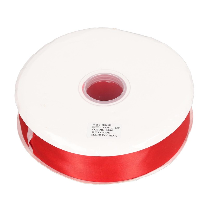 298 Feet Red Ribbon 3.8cm Width High Density Red Satin Ribbon Roll for Flower Wrap Wedding Decoration